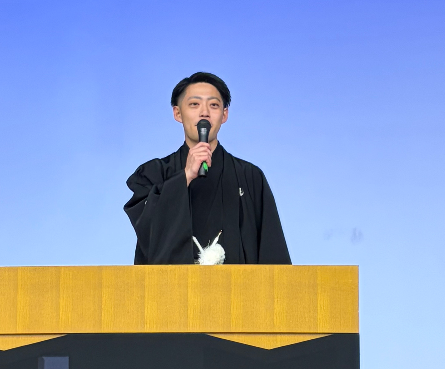 ここで応援部稲門会エンブレムの贈呈が菊地会長から令和7年度代表委員主将の豊島さんにされました。
