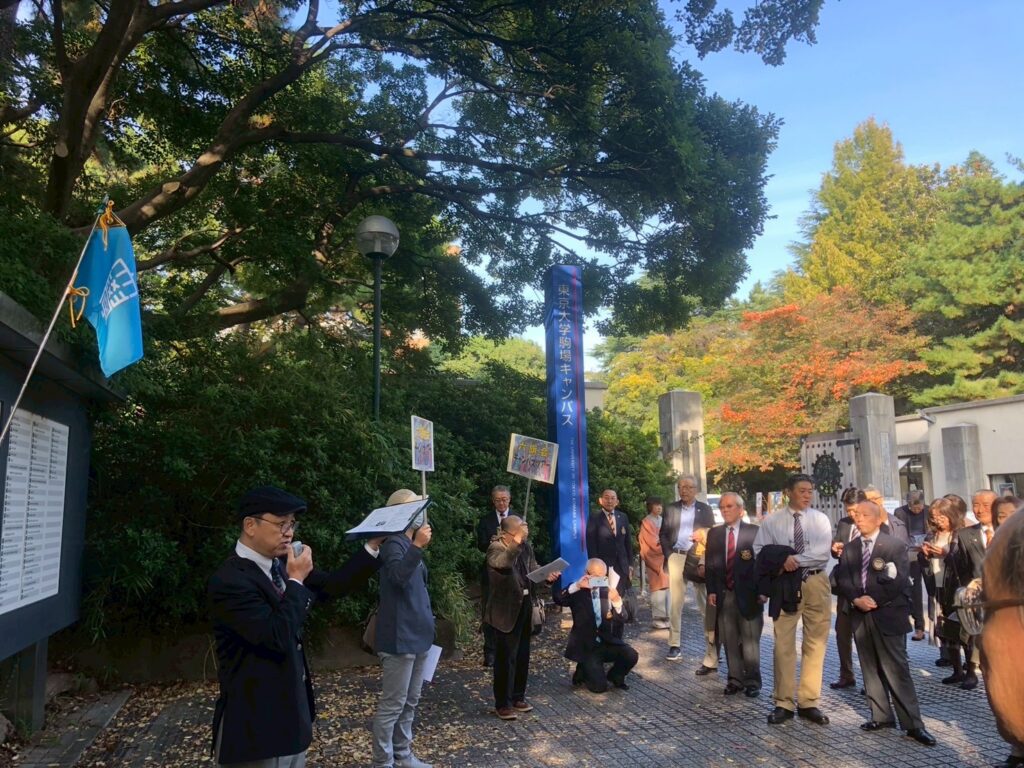 六旗会開会の1時間半前に正門前に集合した参加者は50人超、東大OBによる案内の下、1時間弱をかけてキャンパス内をめぐりました。