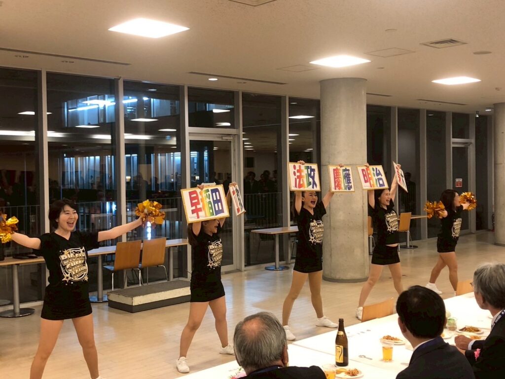 早稲田から連盟順に第一応援歌を行い、最後は東大が大勢のリーダーで「闘魂は」を披露し、他大学を圧倒していました。